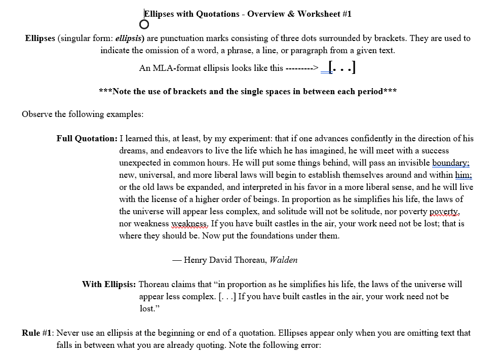 Ellipses With Quotations Overview Worksheet 1 Chegg Com